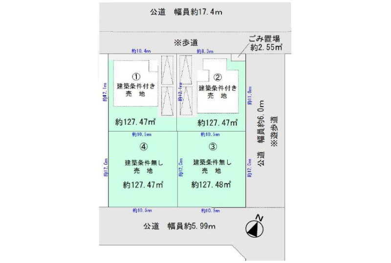 | 建築条件 | 無し | 土地面積 | 127.47㎡〜127.48㎡ |